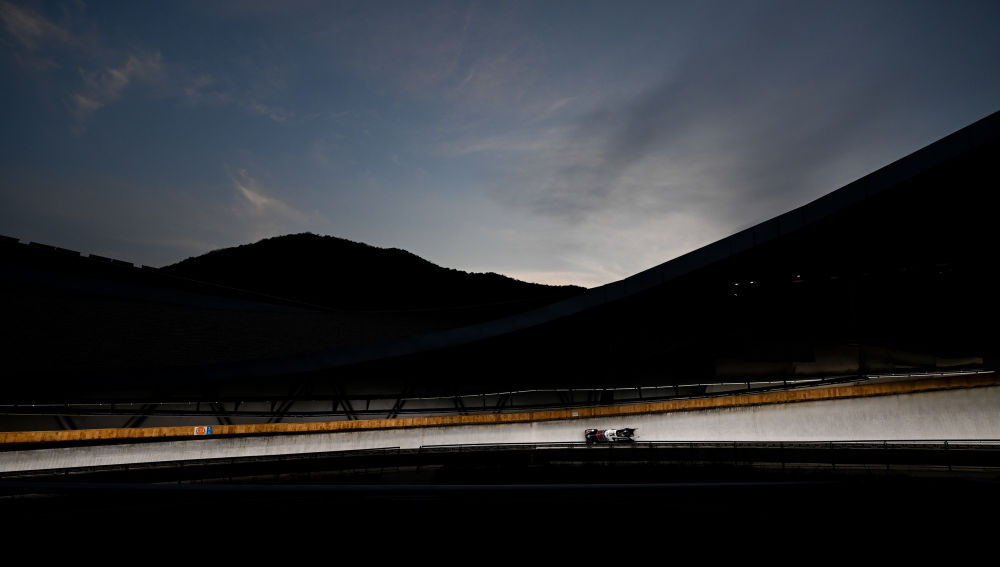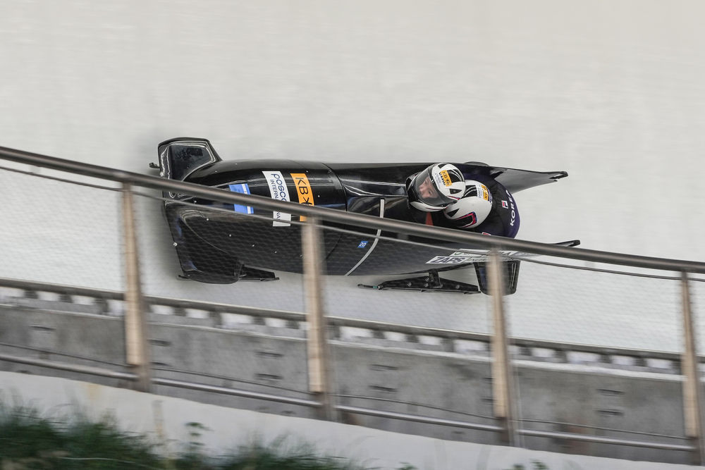 ⬆10月26日,韩国选手金宥兰和朱衡元在女子双人雪车比赛中。新华社记者 彭子洋摄