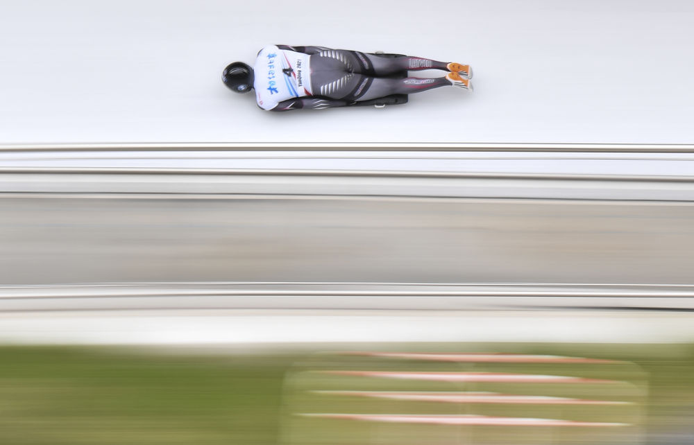 ⬆10月25日,参赛选手在女子单人雪车比赛中。新华社记者 贺长山摄