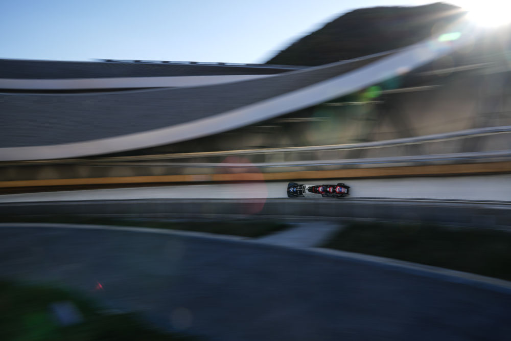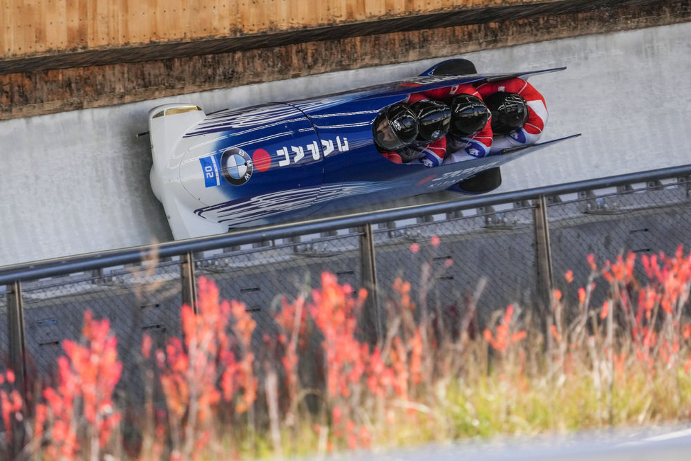 ⬆10月26日,日本选手篠原凌、浜野達也、金子慶輝、栗原嵩在男子四人雪车比赛中。新华社记者 彭子洋摄