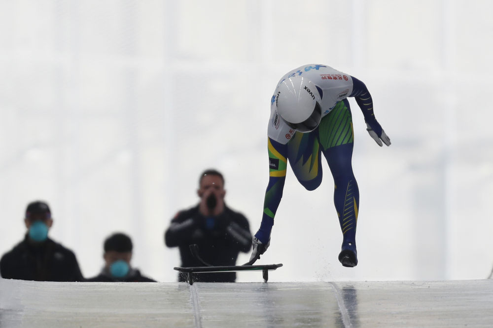 ⬆10月25日,巴西的女子钢架雪车选手开始滑行。新华社发