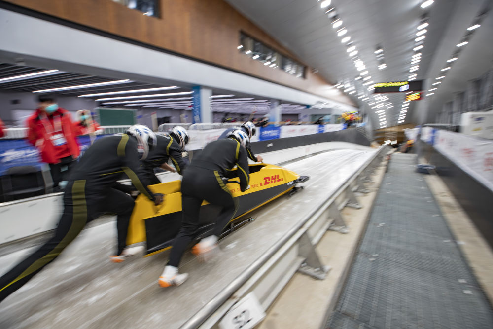 ⬆10月21日,德国四人雪车准备出发 新华社发