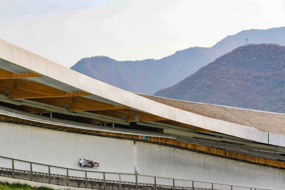 ⬆10月25日,德国选手格罗特赫尔在男子钢架雪车比赛中。新华社记者 彭子洋摄