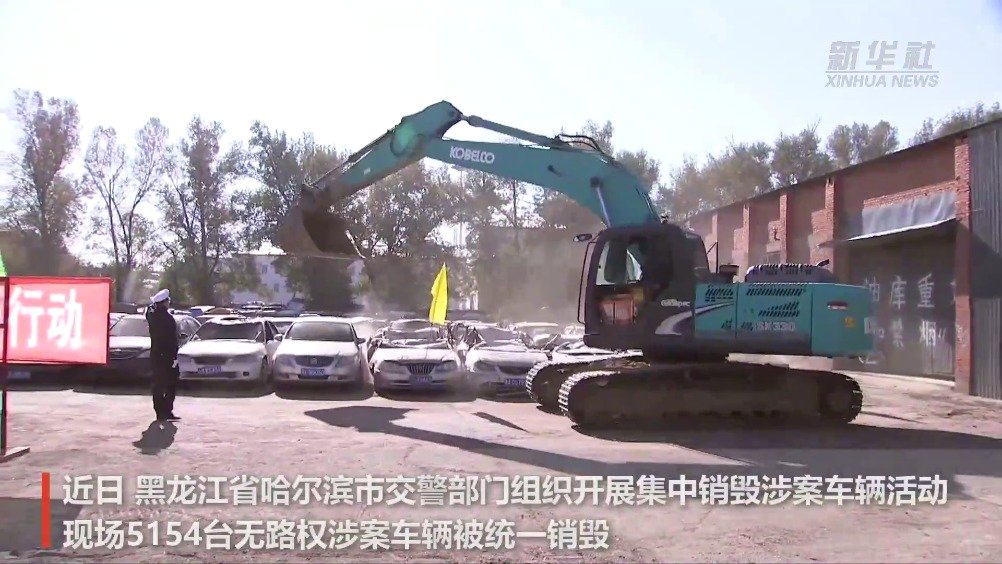 【#哈尔滨销毁5000余台无路权涉案车辆#】近日,黑龙江省哈尔滨市交警部门组织开展集中销毁涉案车辆活动,5154台无路权涉案车辆被统一销毁。据交警部门介绍,此次销毁的机动车均为登报公告满三个月,当事人未到交警部门接受处理的依法扣留车辆。这些车因涉及违反交通法规或交通事故被查扣,长时间无人前来处理;部分车辆已达到报废标准、车辆安全状况较差,一旦上路行驶,将带来极大交通隐患。(记者王鹤) 新华社的微博视频