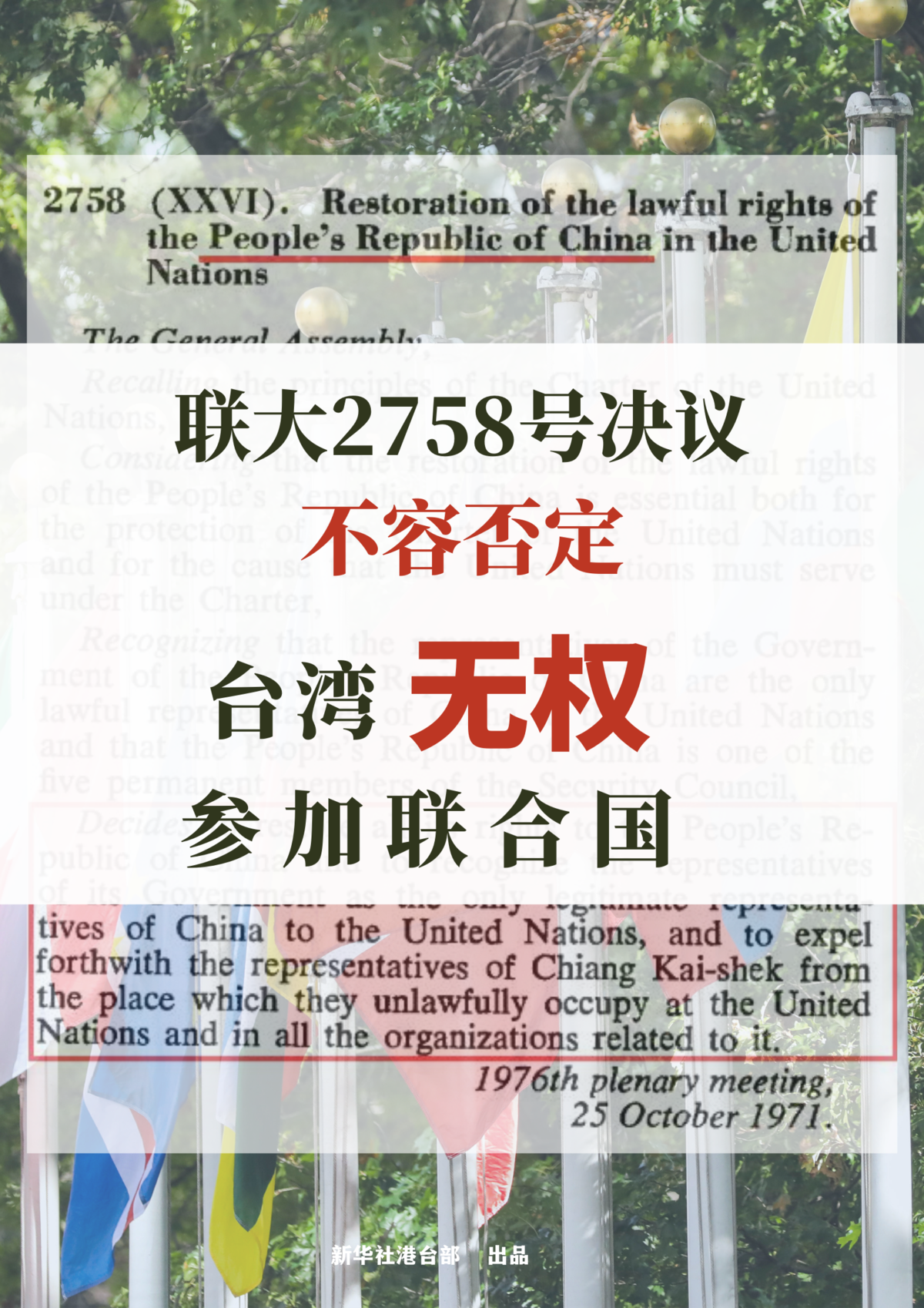 马晓光说,50年前,第26届联大以压倒性多数通过第2758号决议,决定恢复中华人民共和国在联合国的一切权利,承认中华人民共和国政府代表是中国在联合国的唯一合法代表。联大2758号决议从政治上、法律上和程序上明确、彻底解决了中国在联合国的代表权问题。