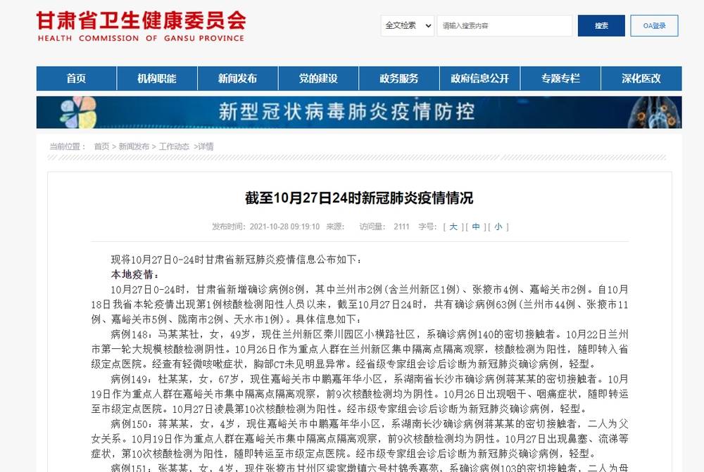 现将10月27日0-24时甘肃省新冠肺炎疫情信息公布如下: