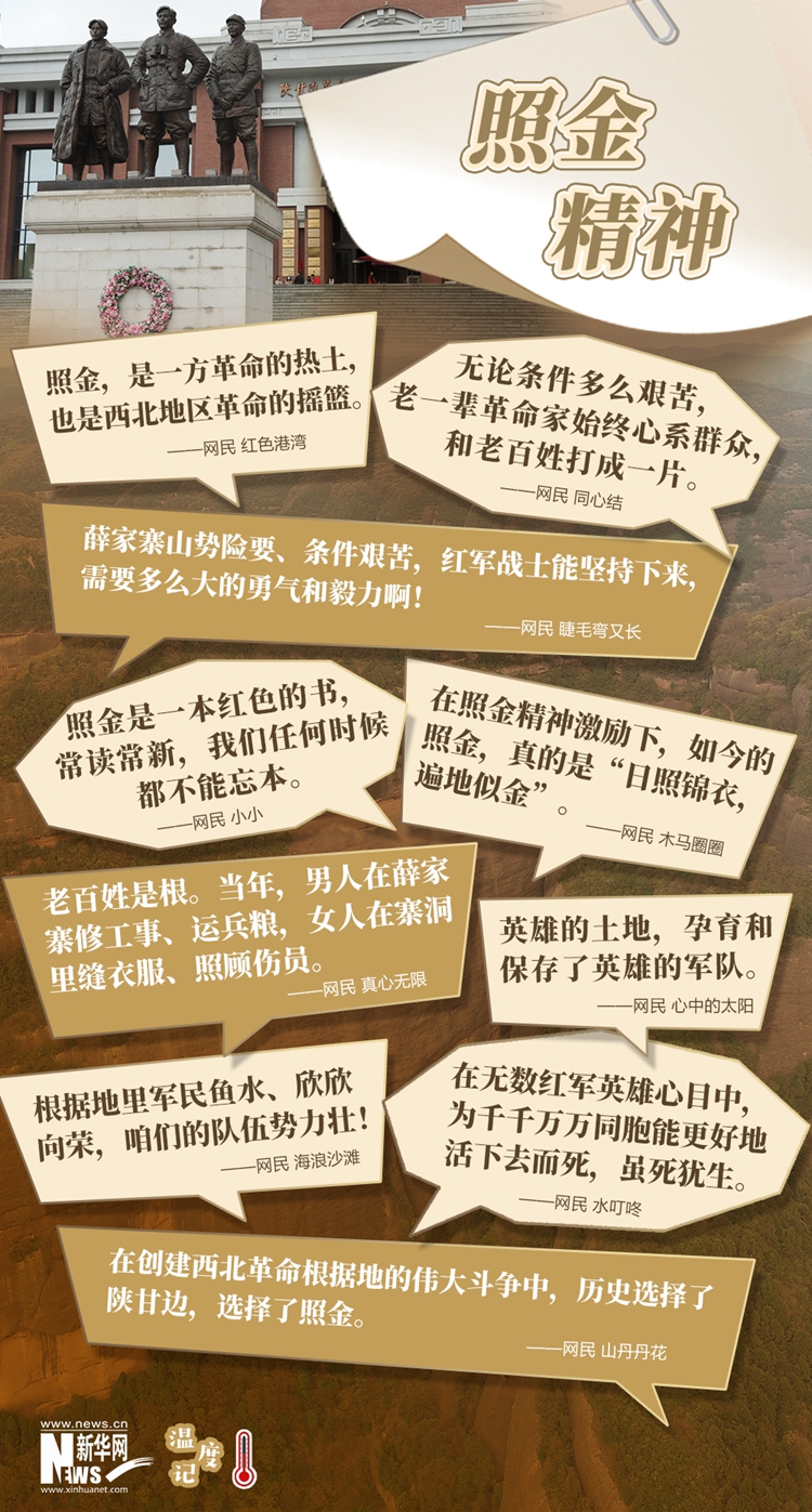 “在照金精神激励下,如今的照金,真的是‘日照锦衣,遍地似金’”,网民在社交平台上的留言,深情讲述着照金发生的巨大变化。听着红色故事成长的照金人,正以精神之力奋勇前行。新征程上,把照金精神传承好、发扬好,依靠群众、密切联系群众,我们的事业将会无往而不胜。(文字:马若虎 海报设计:王晔)