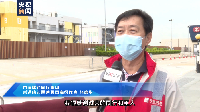 中国建筑国际集团-香港临时医院项目高级代表(现场施工负责人)张德华是香港临时医院的一线建设者,对于完成这个“不可能完成的任务”,他的内心充满了自豪。他说,短短4个月,很感谢同行和工人和我们一起科学、高效地完成这个项目,很高兴,很有成就感。(总台记者 刘志敏 朱丹 金东 王瀛 李志强 黄耀祖 苏子杰 魏可枫 叶丽丽)