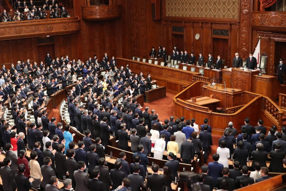 10月14日,在日本东京国会众议院,议员出席众议院会议。日本首相岸田文雄在14日举行的临时内阁会议上宣布解散众议院。(新华社记者杜潇逸摄)