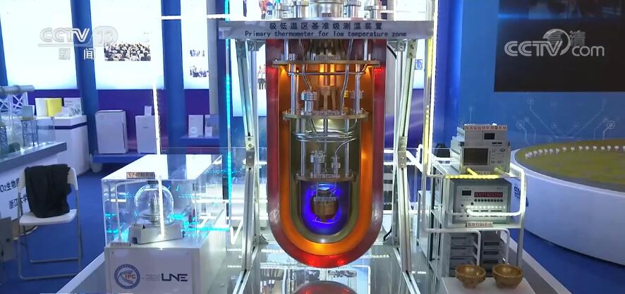 本次展览通过1300多件实物、200多件模型等,重点展出“十三五”以来,深入实施创新驱动发展战略、建设创新型国家所取得的重大科技成果。作为面向世界科技前沿的重大科技成果代表,展览中首次亮相的“极低温区基准级测温装置”实现了我国在极低温区温度计量领域零的突破。据介绍,本领域内极低温区通常是指低于24.5K,也就是−248.65℃的温区,该温区温度的高精度测控技术,是前沿科学、大科学装置、零碳能源、航空航天等领域发展的基础保障。