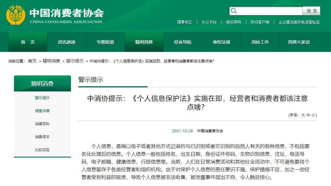 中消协也提醒广大消费者为让《个人信息保护法》发挥更大实效,要认真学法、主动用法: