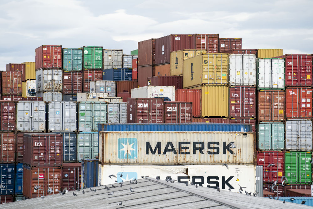 10月26日在美国马里兰州巴尔的摩市港口拍摄的货运集装箱。新华社记者刘杰摄