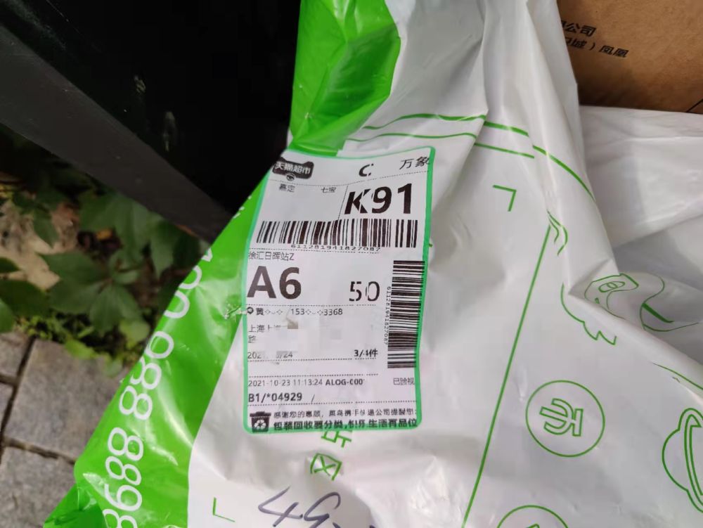 一件快递包裹上的隐私面单,地址信息使用马赛克模糊(2021年10月24日)。新华社记者杨有宗摄