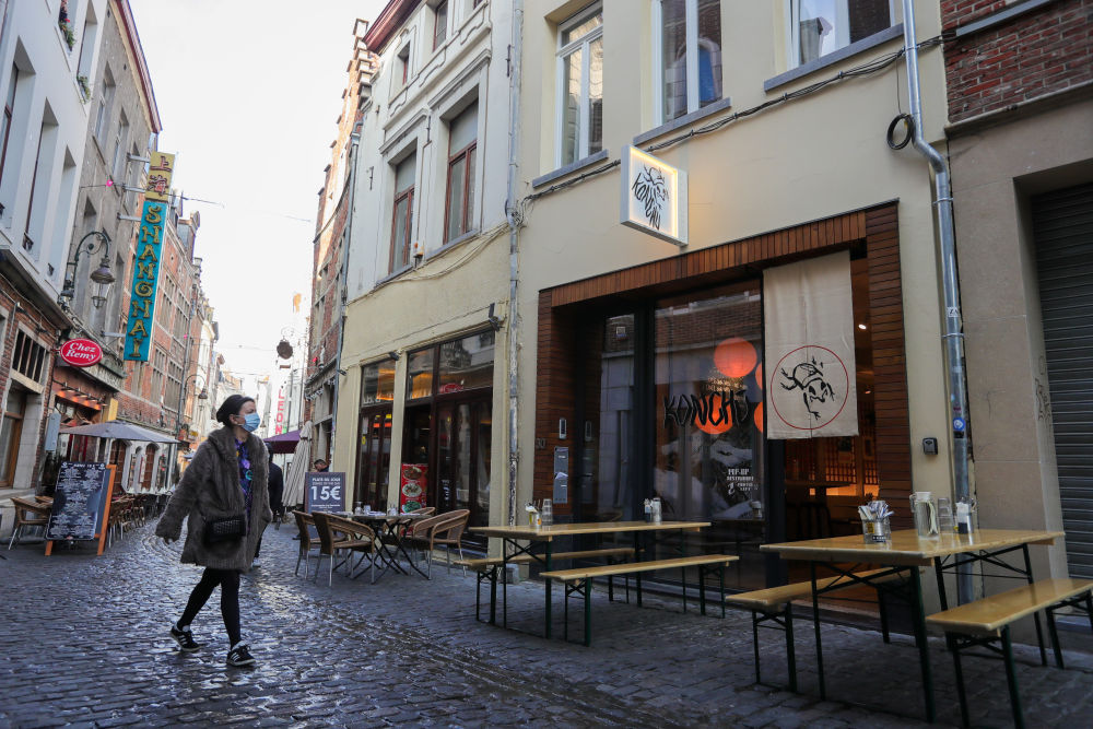 10月27日,行人经过比利时布鲁塞尔市中心的一家餐馆。新华社记者 郑焕松 摄