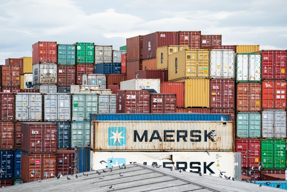 这是10月26日在美国马里兰州巴尔的摩市港口拍摄的货运集装箱。(新华社记者刘杰摄)