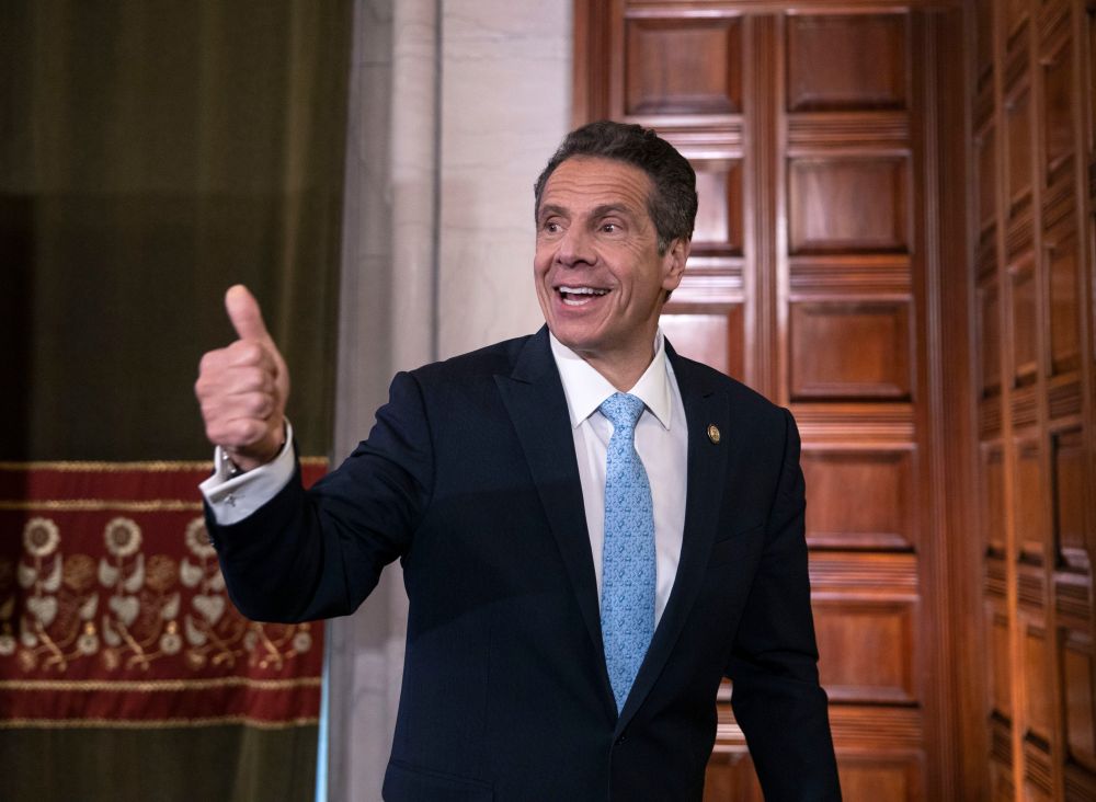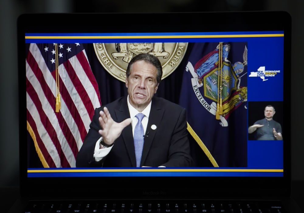 2020年5月15日,美国纽约州州长科莫在纽约州首府奥尔巴尼出席新闻发布会。他当天宣布,纽约州部分地区“解封”。(新华社发,纽约州州长办公室供图 ,迈克·格罗尔摄)