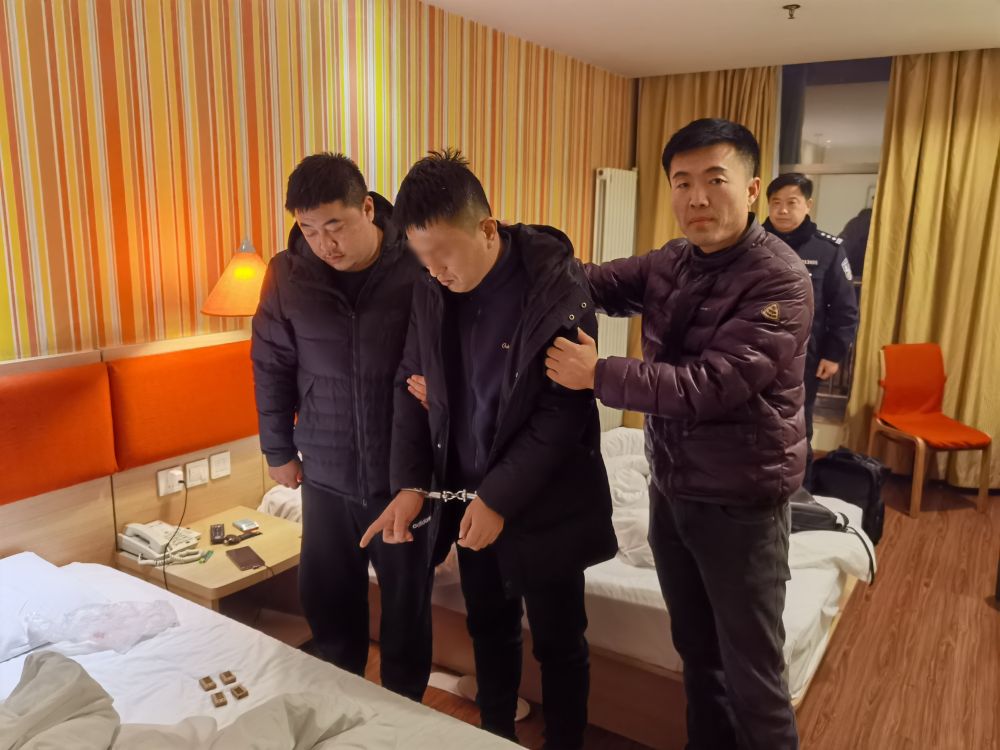 办案民警抓获组织考试作弊的犯罪嫌疑人。(济南市公安局长清区分局供图)