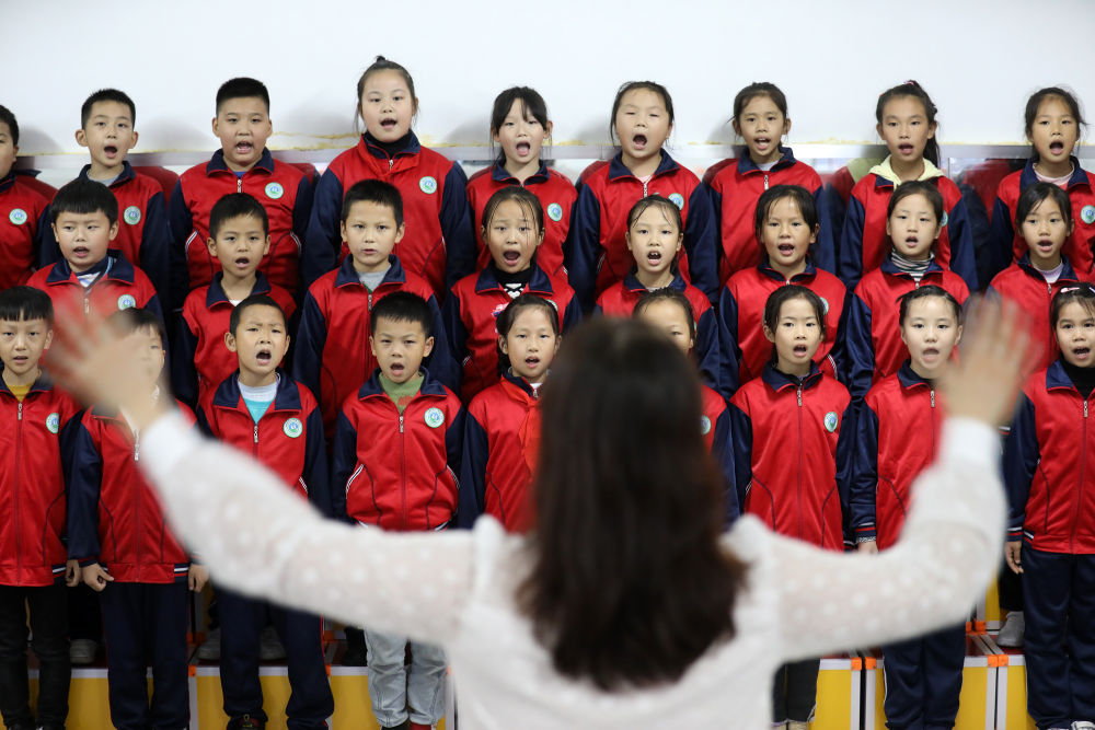 10月29日,在湖南省资兴市鲤鱼江完全小学,学生练习合唱。新华社发(李科摄)