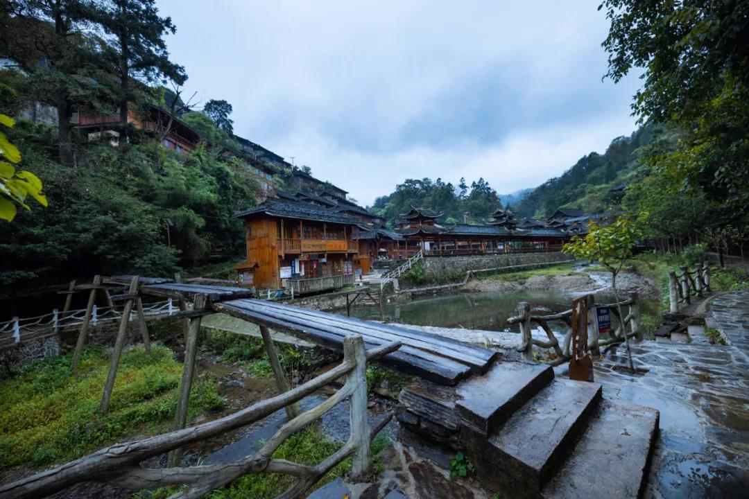 在长滩村,这里不仅风光优美,更有百余名绣娘依托扶贫文化工坊,开办“指尖技艺”等活动。在红阳苗寨,千年古樟祭祀树是无数当地人心中祈福的寄托,公祭的拦河桥由五组排木对接架设,每组排木又由五根杉木组成,每排木下由两根杉木打孔穿扮作桥墩支撑……