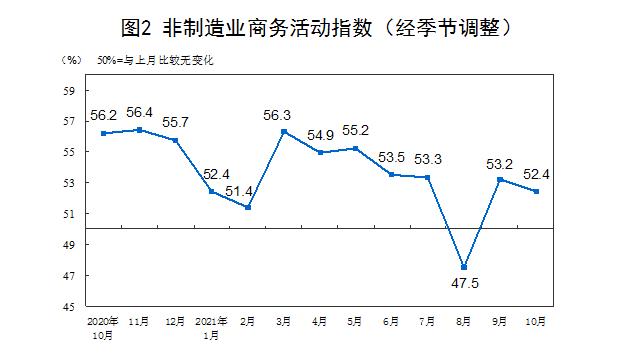 10月份,非制造业商务活动指数为52.4%,比上月下降0.8个百分点,但仍高于临界点,非制造业继续保持扩张。