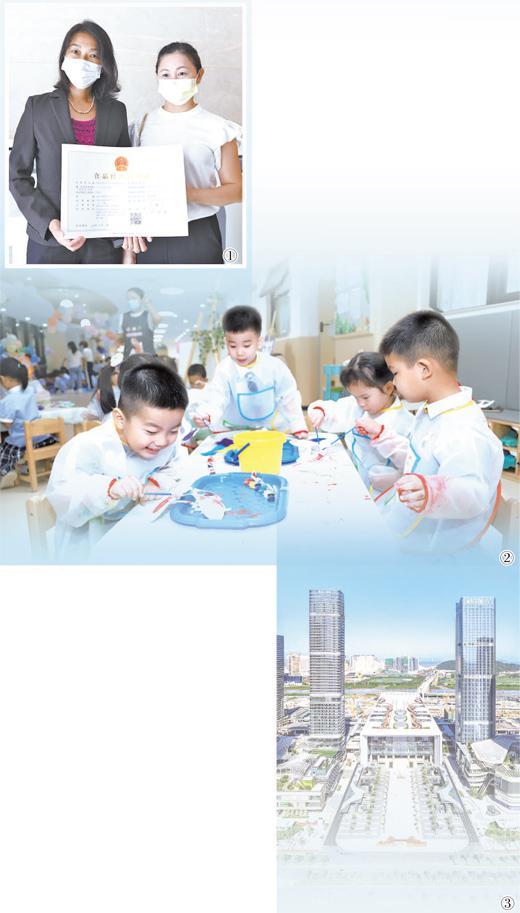 图①:9月17日,横琴粤澳深度合作区综合服务中心,企业代表领到合作区首个食品经营许可证。 新华社记者 邓 华摄 图②:首都师范大学横琴子期实验幼儿园的孩子们。 资料照片 图③:实施“合作查验、一次放行”模式的横琴口岸新旅检区域。 资料照片