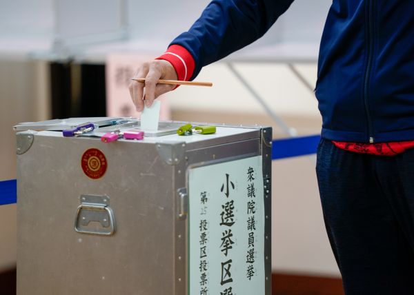 10月31日,选民在日本东京一处投票点将选票投入票箱。新华社发
