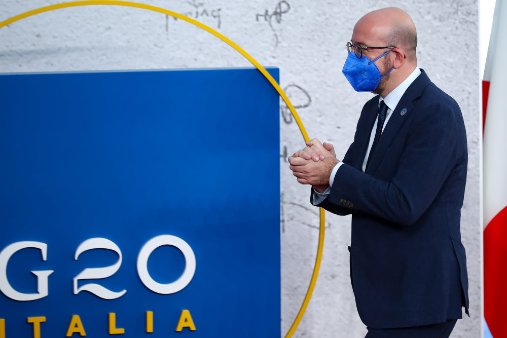 10月30日,在意大利罗马,欧洲理事会主席米歇尔抵达二十国集团领导人峰会会场。二十国集团领导人峰会30日以线上线下相结合方式在意大利首都罗马开幕。为期两天的会议将重点讨论应对新冠疫情、推动经济复苏和应对气候变化等全球重大议题。(新华社记者张铖摄)