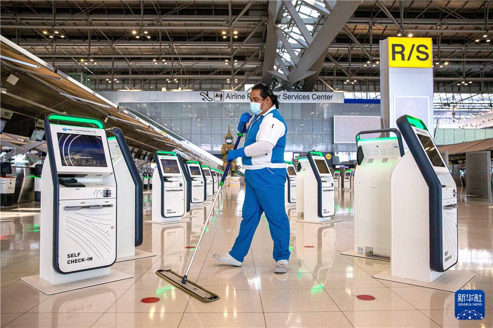 11月1日,清洁工在泰国曼谷素万那普机场工作。新华社记者 王腾 摄