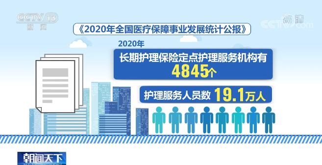 《2020年全国医疗保障事业发展统计公报》显示,2020年,长期护理保险定点护理服务机构有4845个,护理服务人员数19.1万人。