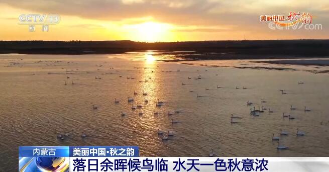 央视网消息:现在我们看到的是位于内蒙古鄂尔多斯市成吉思汗国家森林公园的红碱淖片区。秋深云重,候鸟来临,成群结队的天鹅在湖面上自由觅食,临水飞翔。落日余晖,水天一色,候鸟像大自然的精灵点缀其中,共同构成了一幅灵动壮阔的景观画。