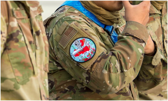 美军在2020年“敏捷死神”的演习中,相关空军人员制服上臂章印着中国地图形状的红色剪影。(网络配图)