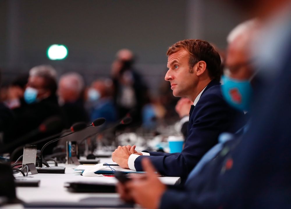 11月1日,法国总统马克龙出席在英国格拉斯哥举行的《联合国气候变化框架公约》第26次缔约方大会世界领导人峰会开幕式。(新华社记者韩岩摄)
