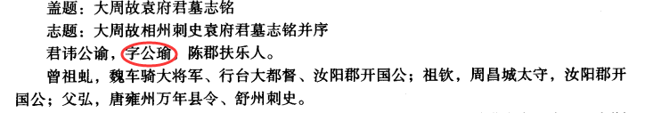 古人对有地位的男性常称“某公”,但有时“公”是姓名中的一部分,如果作者没弄清楚状况,很有可能就要出错。如狄仁杰曾撰《相州刺史袁公瑜墓志铭》,作者不察,以“公”为尊称,将这名刺史的名字“袁公瑜”径改为“袁瑜”。