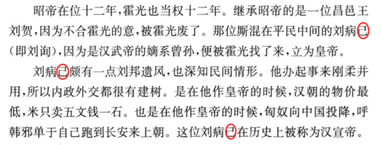 笔者在查阅文献时,发现不少图书将汉宣帝即位前的名字写作“刘病己”。从常识来说,应没有父母希望自己的孩子生病,取名“病己”实不可思议。查《汉书》,应是“刘病已”。汉宣帝身世坎坷,屡遭磨难而多病苦,取名“病已”,寄意健康平安。如写成“病己”,则意思全然相反。