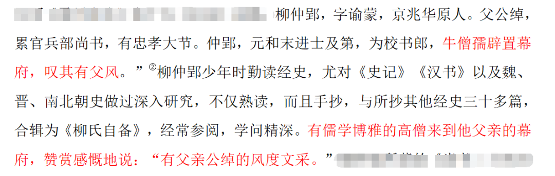 下面一个令人哭笑不得的错误,也源自作者的错误解读。下图中红色字体的文字“牛僧孺辟置幕府,叹其有父风”,作者很贴心地翻译成白话文: