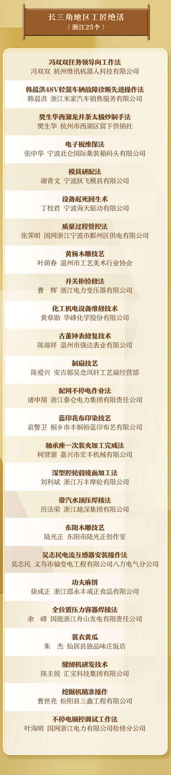 浙江都有哪些能工巧匠以及工匠绝活入选?我们一起来看看。