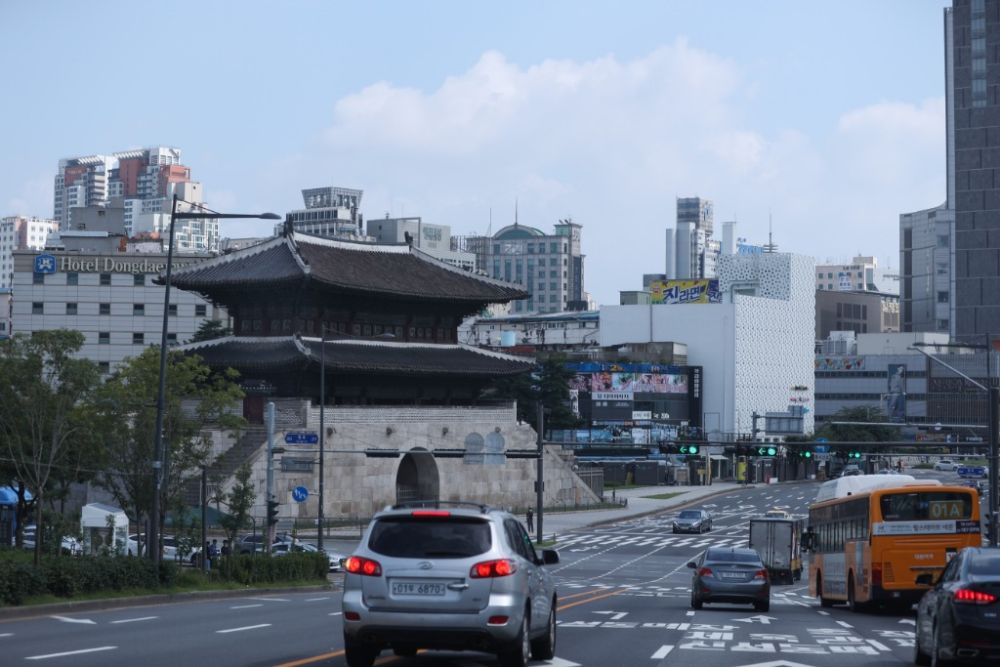 2020年8月30日,在韩国首尔,东大门附近行人车辆稀少。(新华社记者王婧嫱摄)