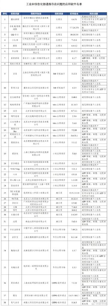 【#工信部通报38款违规App#涉超范围索取权限、过度收集用户个人信息等】工信部3日在官网发布通报,近期针对用户反映强烈的App超范围、高频次索取权限,欺骗误导用户下载等违规行为进行了检查,共发现38款App存在问题。工信部要求这些App应在11月9日前完成整改,逾期不整改或整改不到位的,将依法依规进行处置并予以行政处罚。