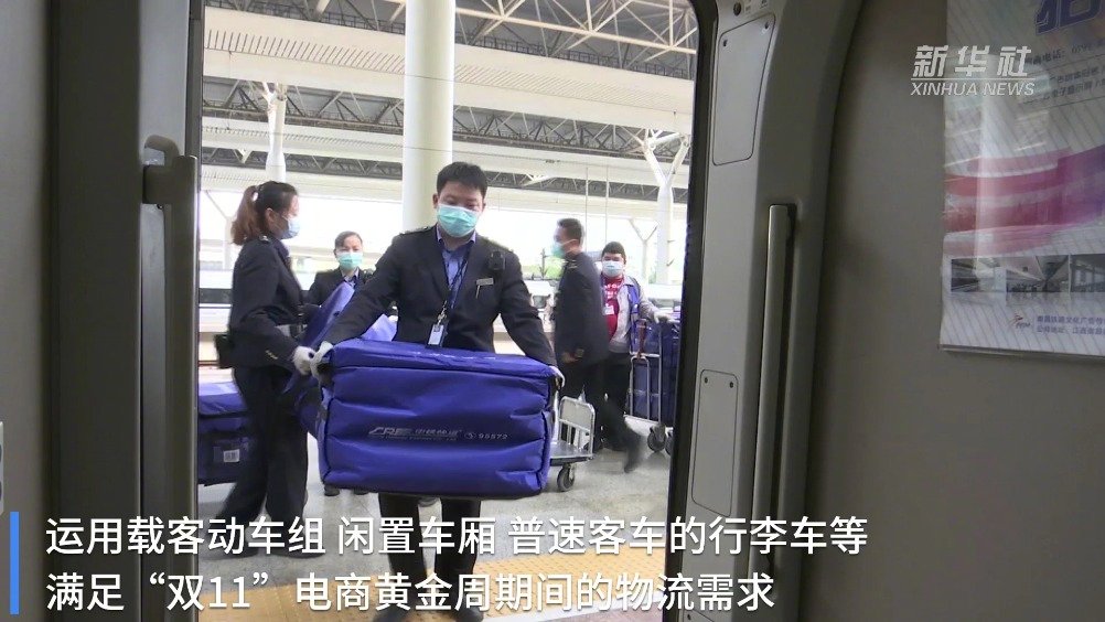 【莫急!#您的快递已坐上高铁正飞驰而来#】今年11月1日至20日电商网络购物高峰期间,中国铁路南昌局集团有限公司开启铁路“双11”电商黄金周快件运输工作,运用载客动车组、闲置车厢和普速客车的行李车等,满足“双11”电商黄金周期间的物流需求,运输期间严格执行“收货验视、实名登记、过机安检”安全保障要求,所有货物做到包装干净整洁,并做好防疫消毒。(记者余刚) 新华社的微博视频