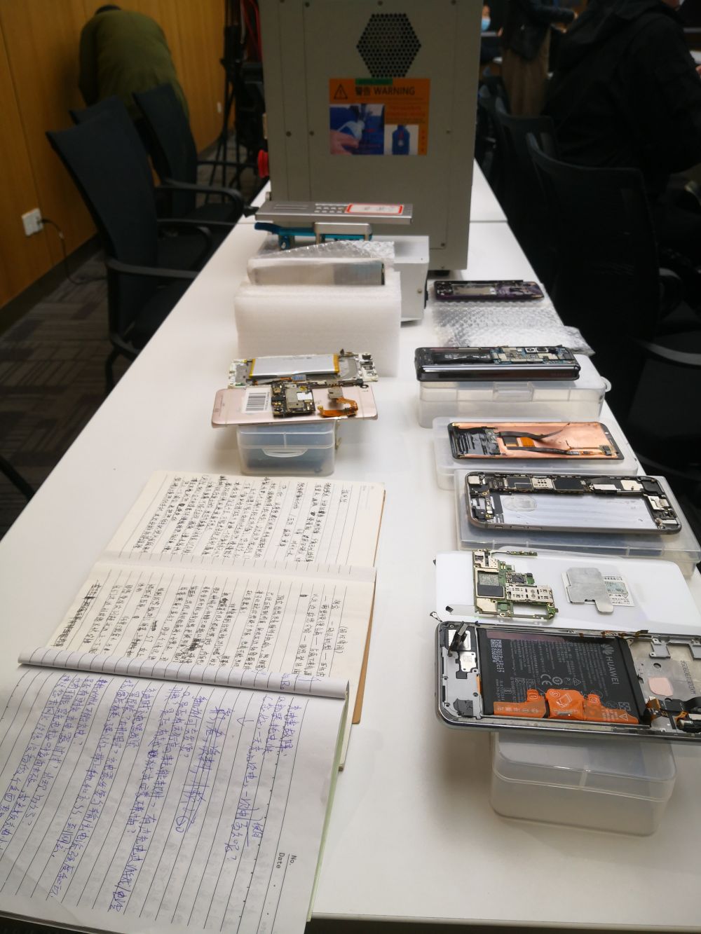 涉案的部分手机和话术本。受访者供图