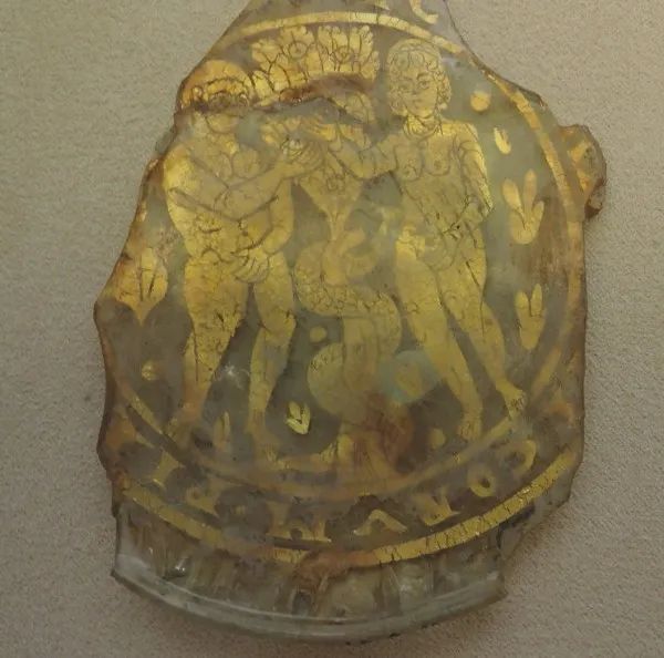 ▲ 古罗马夹金玻璃杯底《始祖在伊甸园中堕落》