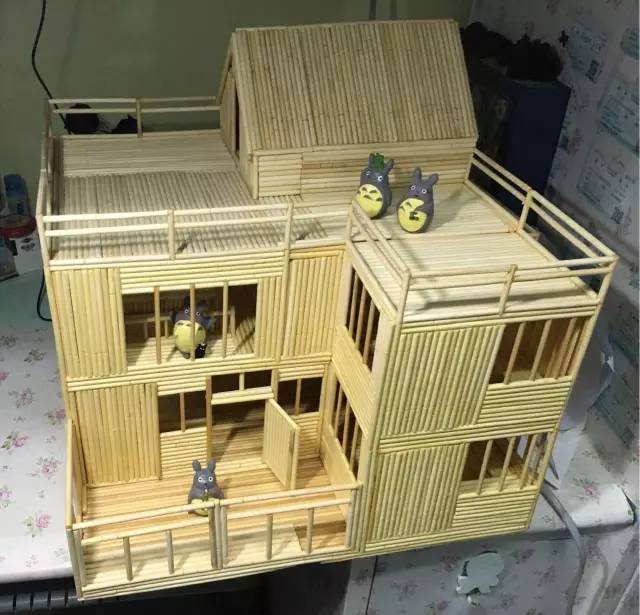提前买了300双筷子,30瓶胶水。通过聊天,连哄带骗推断出她家房子局部图。从零开始学着做,每天下课就泡在宿舍,一直到半夜12点才上床。