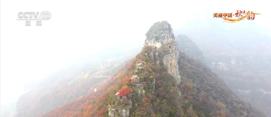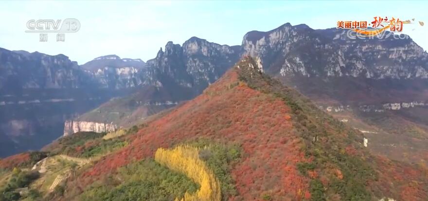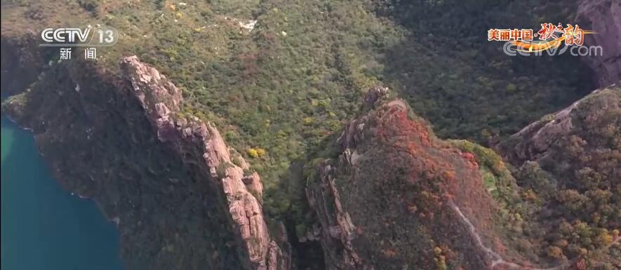 央视网消息:一带江山如画,风物向秋潇洒。伴随着阵阵秋风,河南新乡的宝泉大峡谷已是一片浓郁的秋色。碧水丹山之间的簇簇彩叶,依山就势漫卷开来。黄栌、翠柏等多种植物呈现出浓厚多彩的颜色,连绵起伏的太行山犹如一片翻涌着的绚丽汪洋。汪洋之下,宝泉大峡谷内飞瀑跌宕,与碧潭溪流共同映衬着五彩山林,绘就了一幅秋色无边的太行秋图。