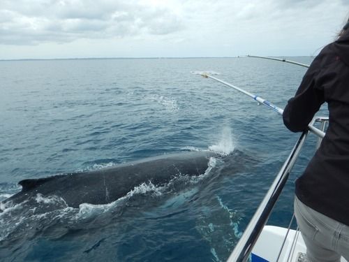 这张2017年的资料照片显示,澳大利亚新南威尔士大学研究人员在澳大利亚昆士兰州海域对一只座头鲸开展科研工作。(新华社发,新南威尔士大学供图)