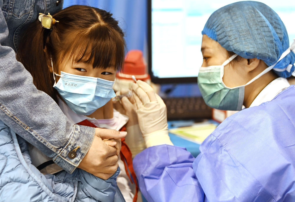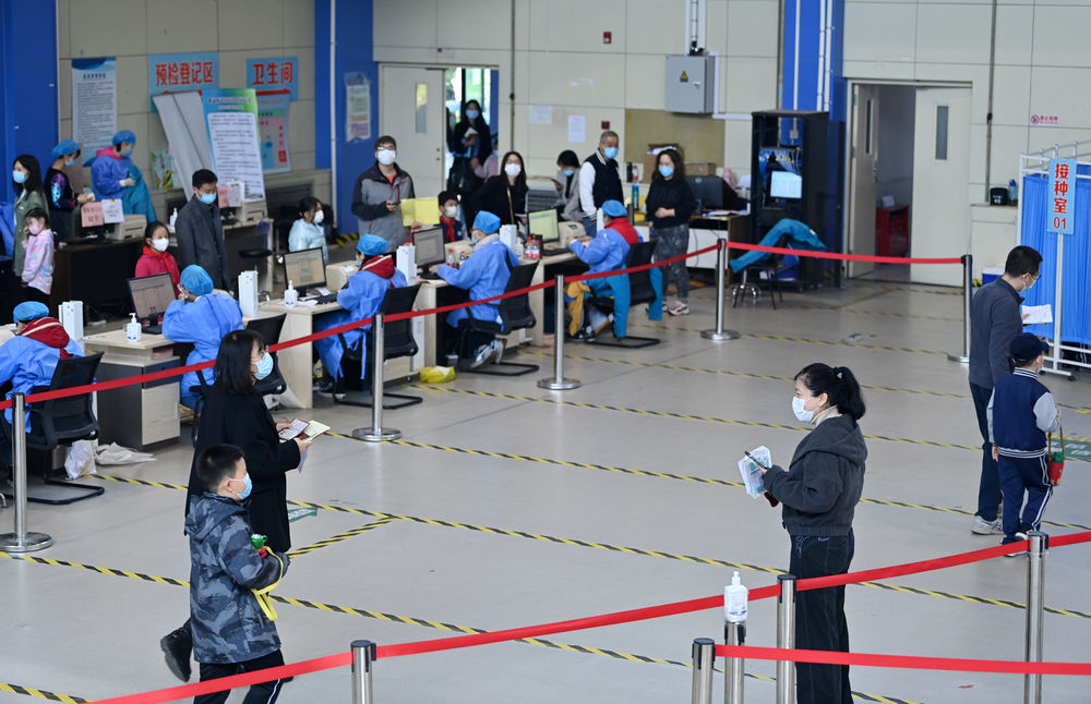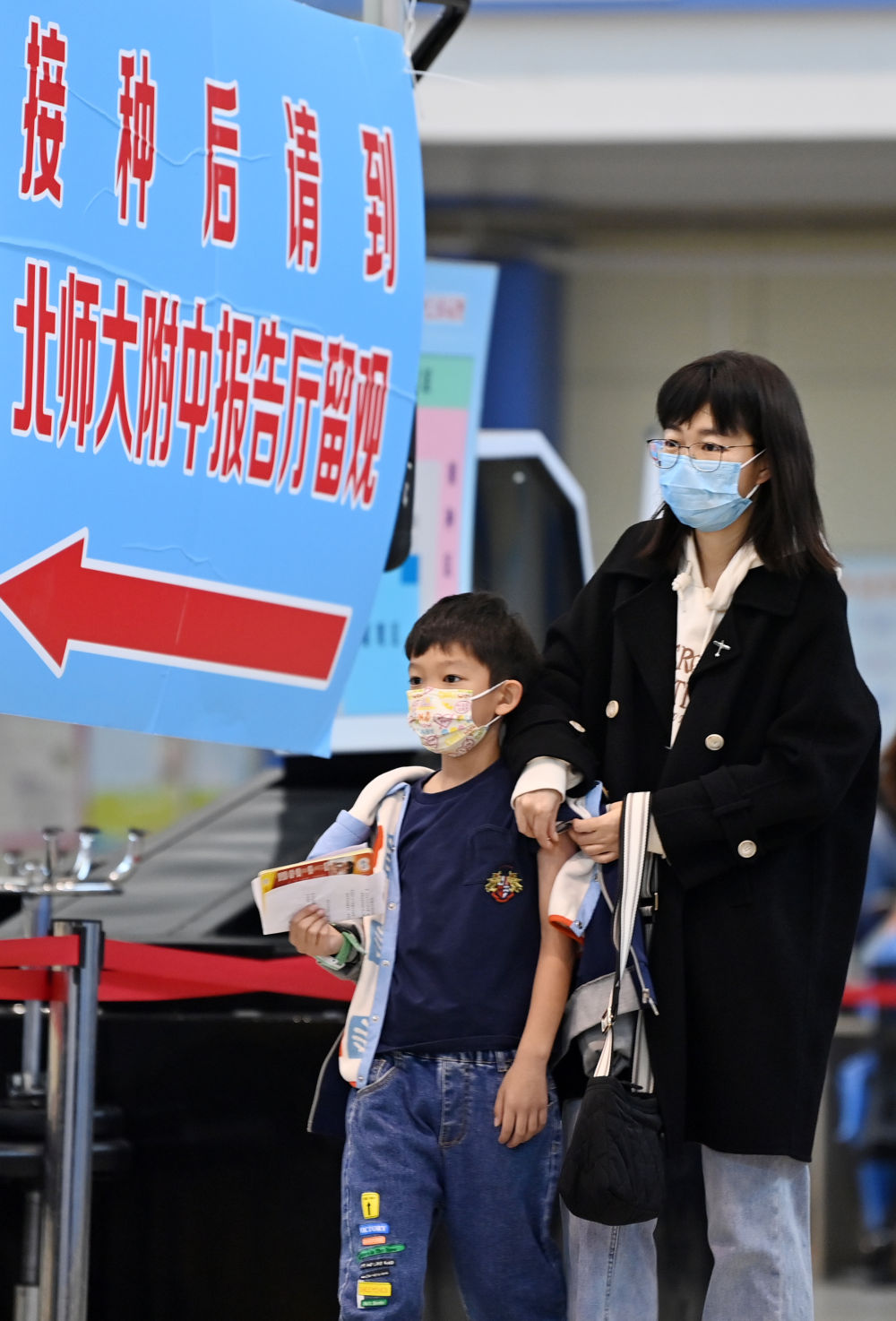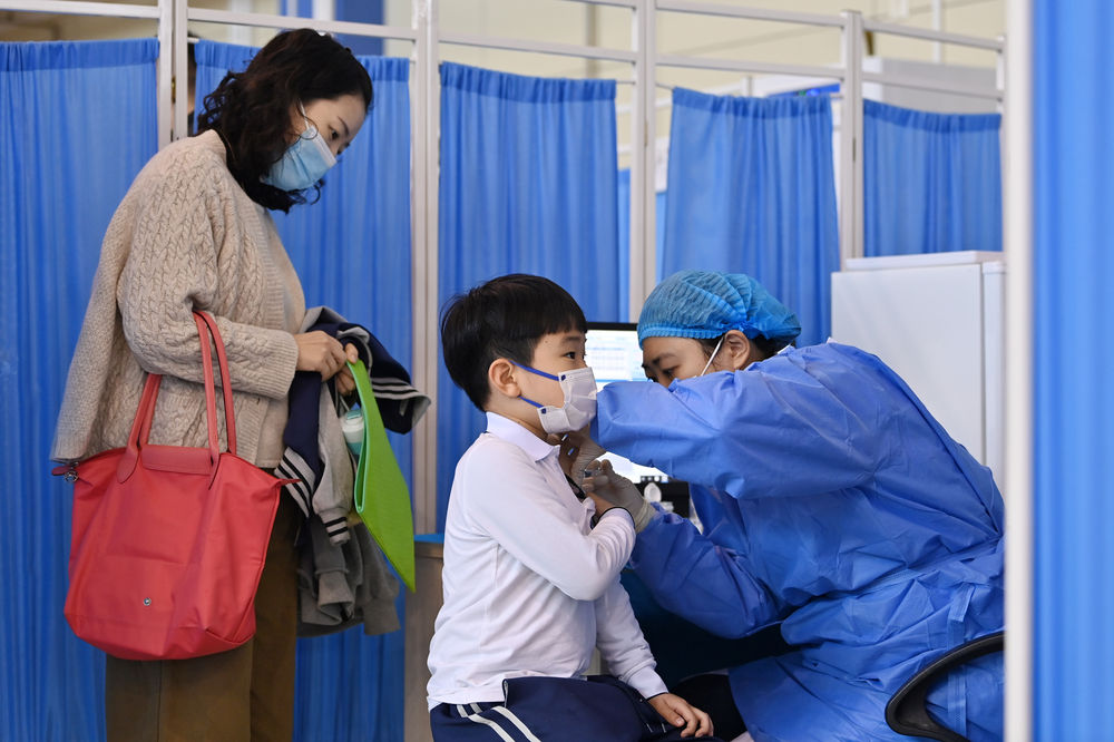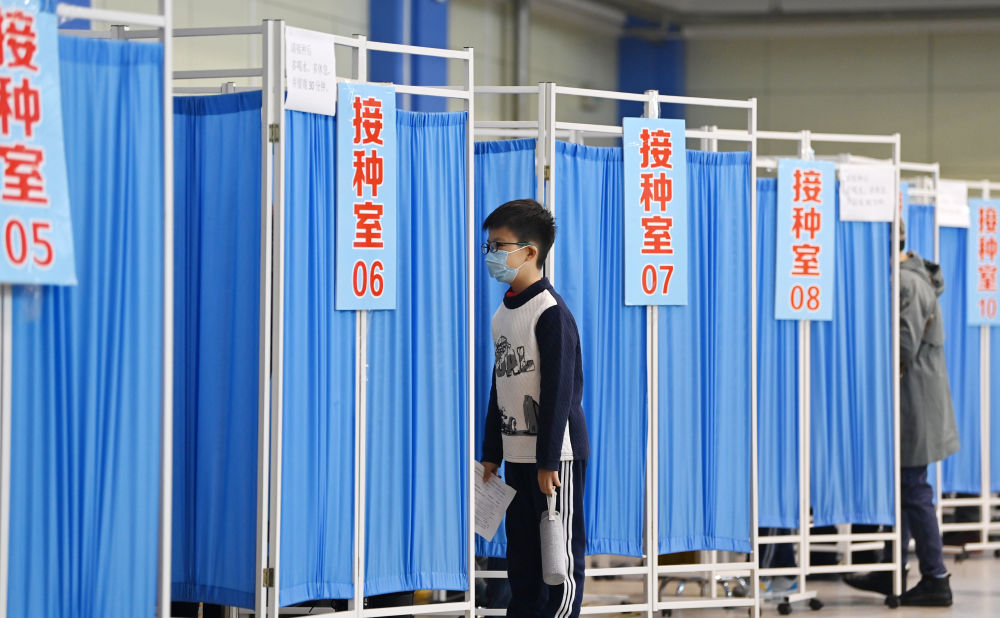当日,天津市河西区德贤小学组织学生在监护人的陪同下,到北师大天津附中体育馆新冠疫苗临时接种点接种疫苗。近日,天津市启动3到11岁人群新冠疫苗接种工作。