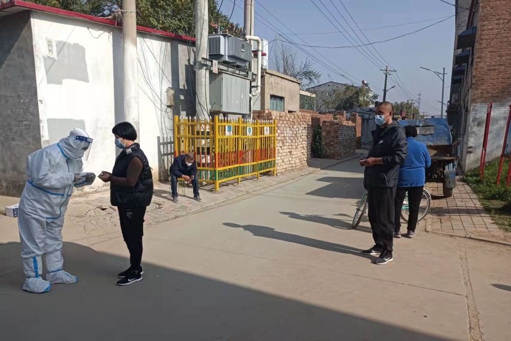 11月4日,深泽县东袁庄村村民正在做第4轮核酸检测。(深泽县委宣传部供图)