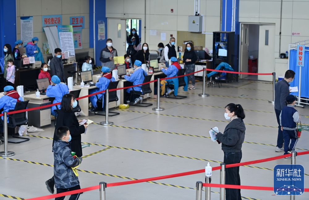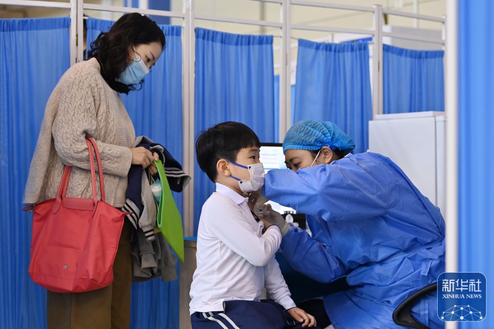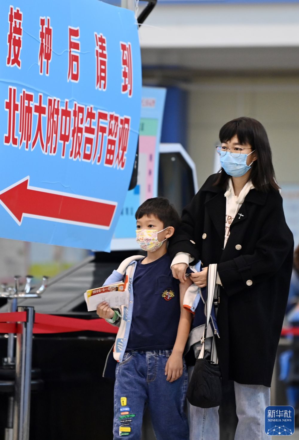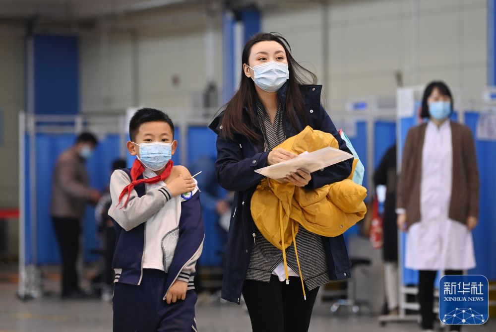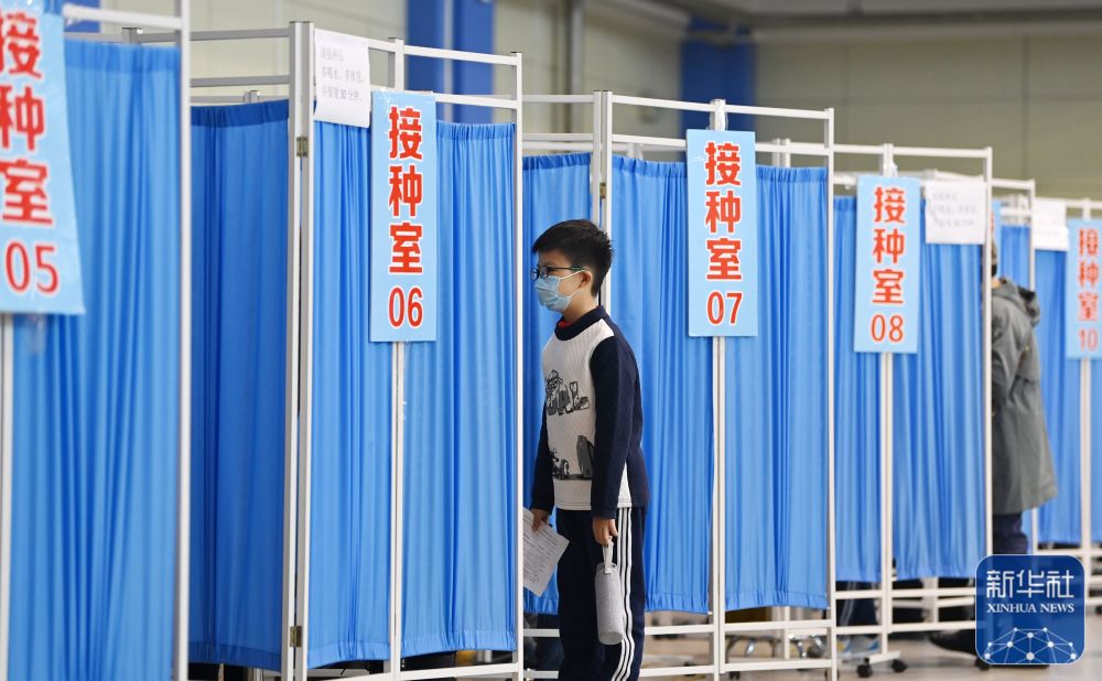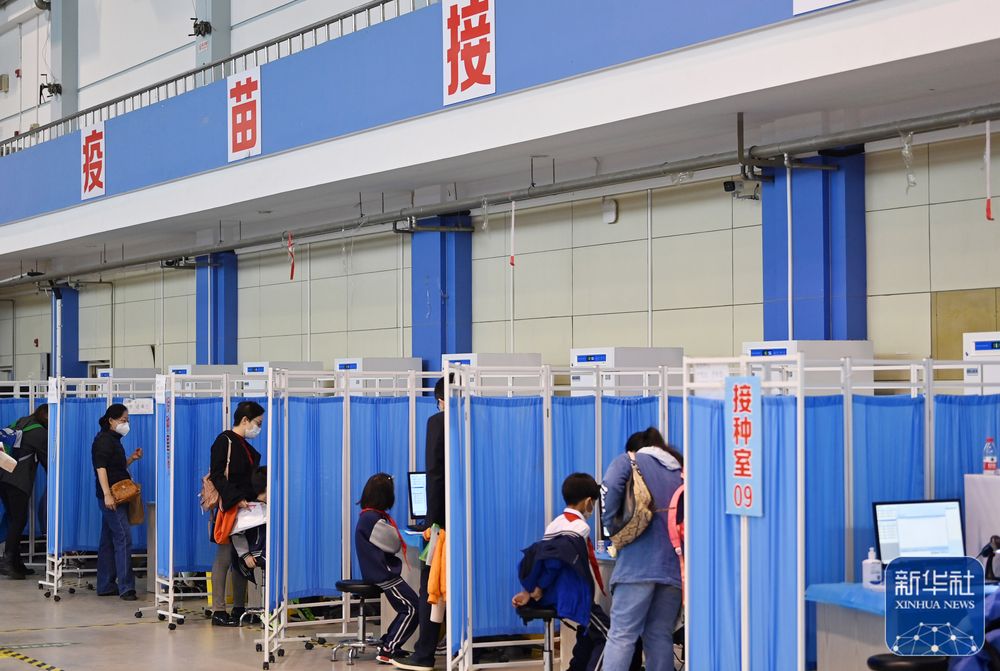 ↑11月4日拍摄的北师大天津附中体育馆新冠疫苗临时接种点。