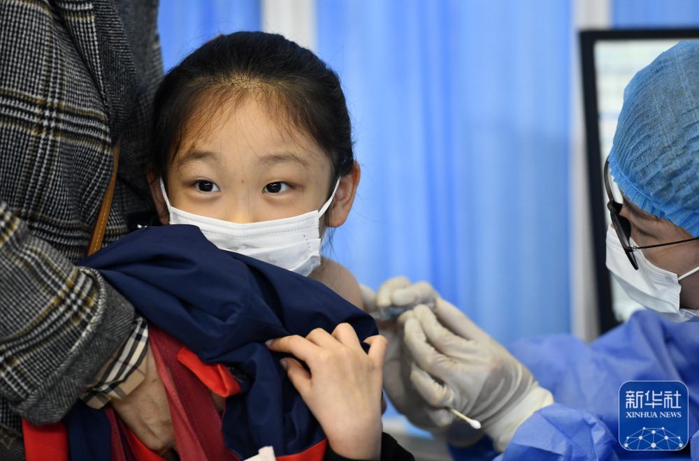 ↑德贤小学学生在家长陪伴下接种疫苗。