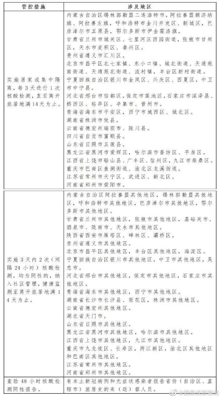 若您在近十四天内有中高风险地区及疫情发生地旅居史,尤其是与病例轨迹有交集的市民,请及时向社区、单位、旅店报备。社区将根据您的具体情况安排隔离排查和核酸检测。具体管控措施如下↓↓