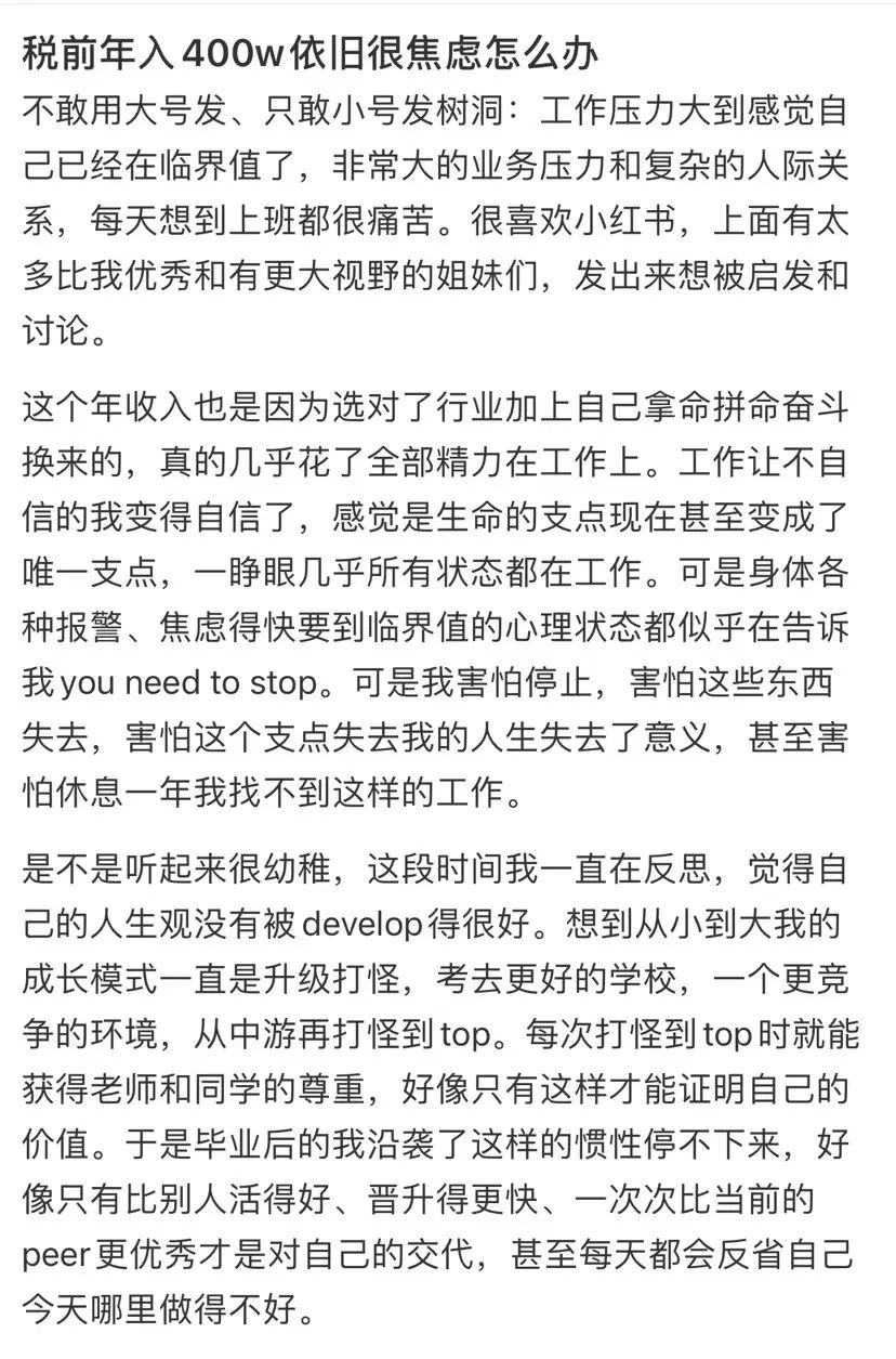 但读完全文发现,这位精英博主的困惑虽“凡”,但其实生活中并不罕见——已经非常厉害的人,在生活中却感觉不到快乐。不管已经获得了多少成就,永远都觉得自己不够好,总是感到深深的焦虑和不安,甚至越努力越怀疑自己。