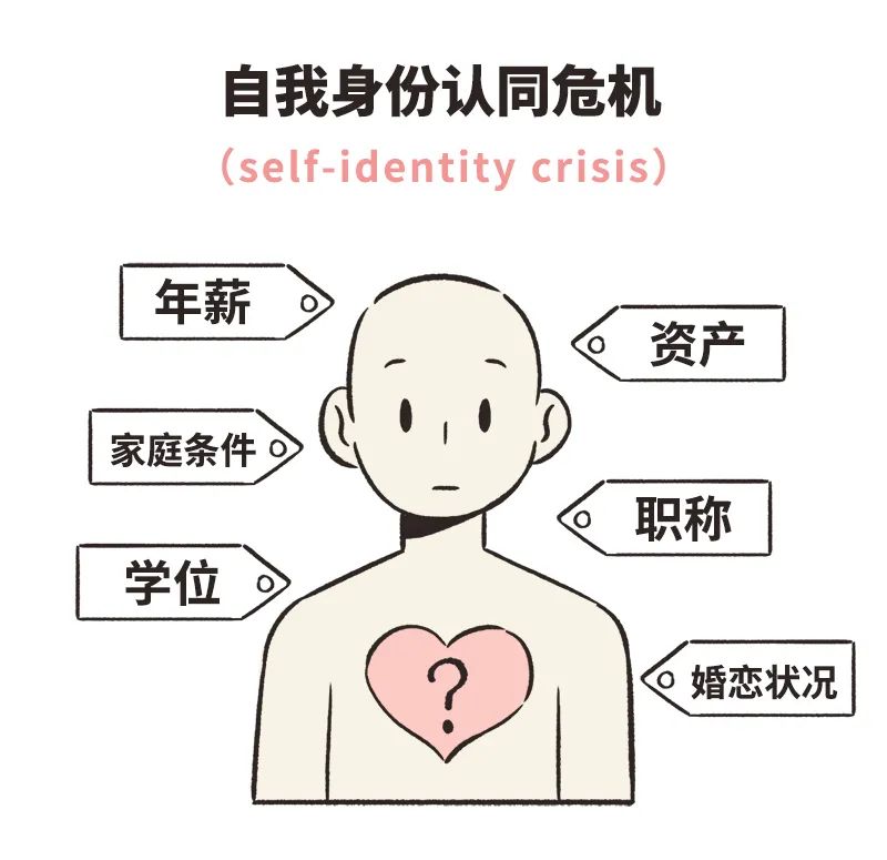 “自我身份认同危机”指的是,当人们在面对“我是谁”“我想要怎样的人生”这样的问题时,对自我进行的持续性、破坏性地评估、试错和重新评估的过程。
